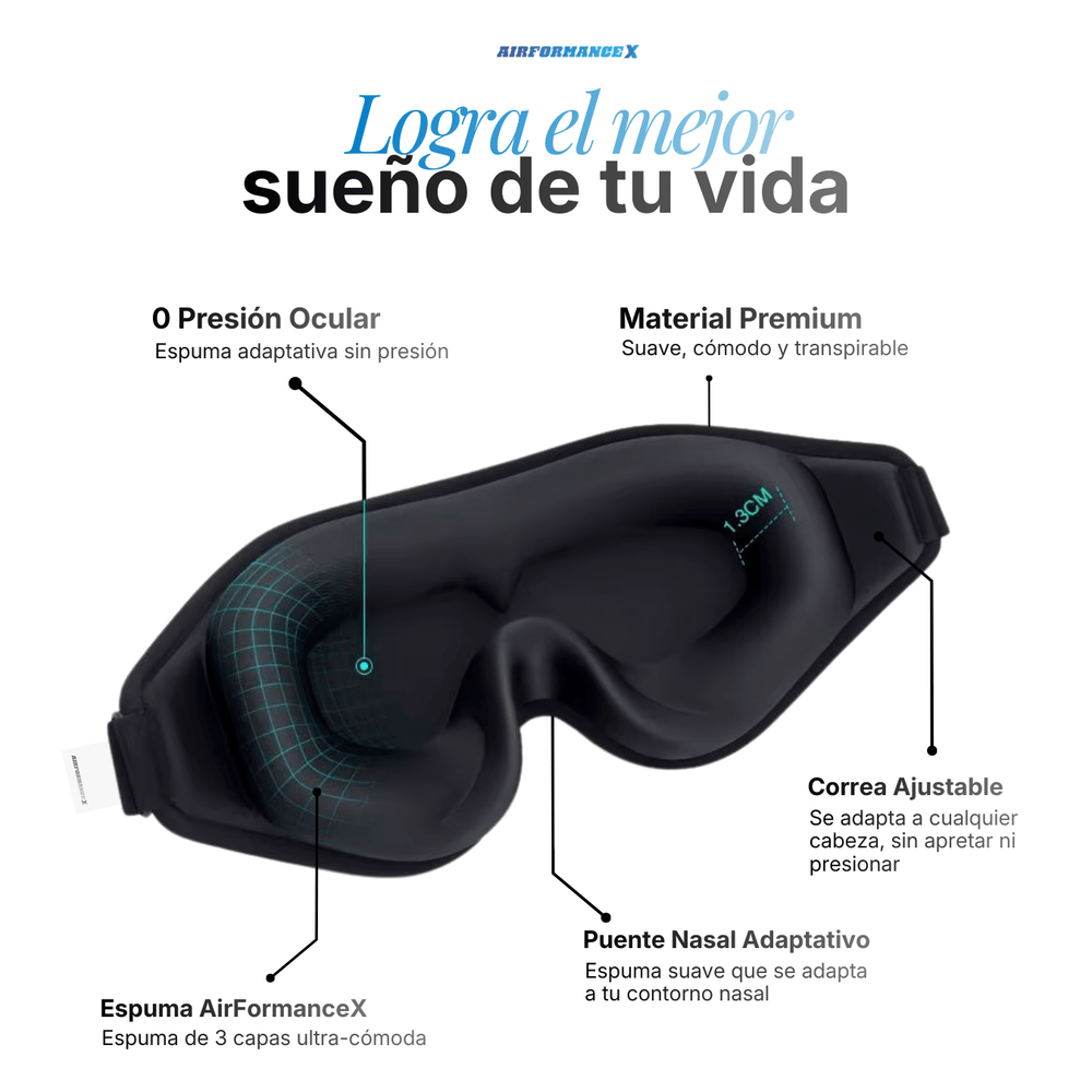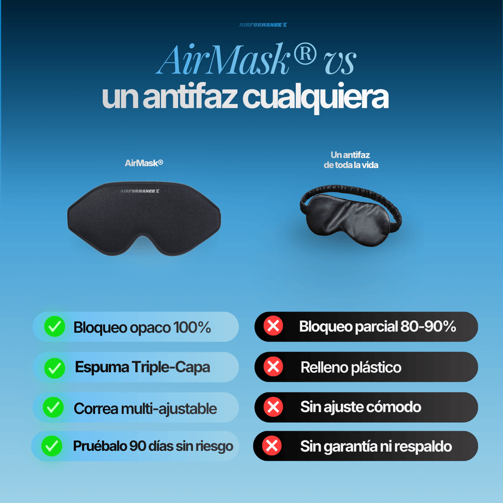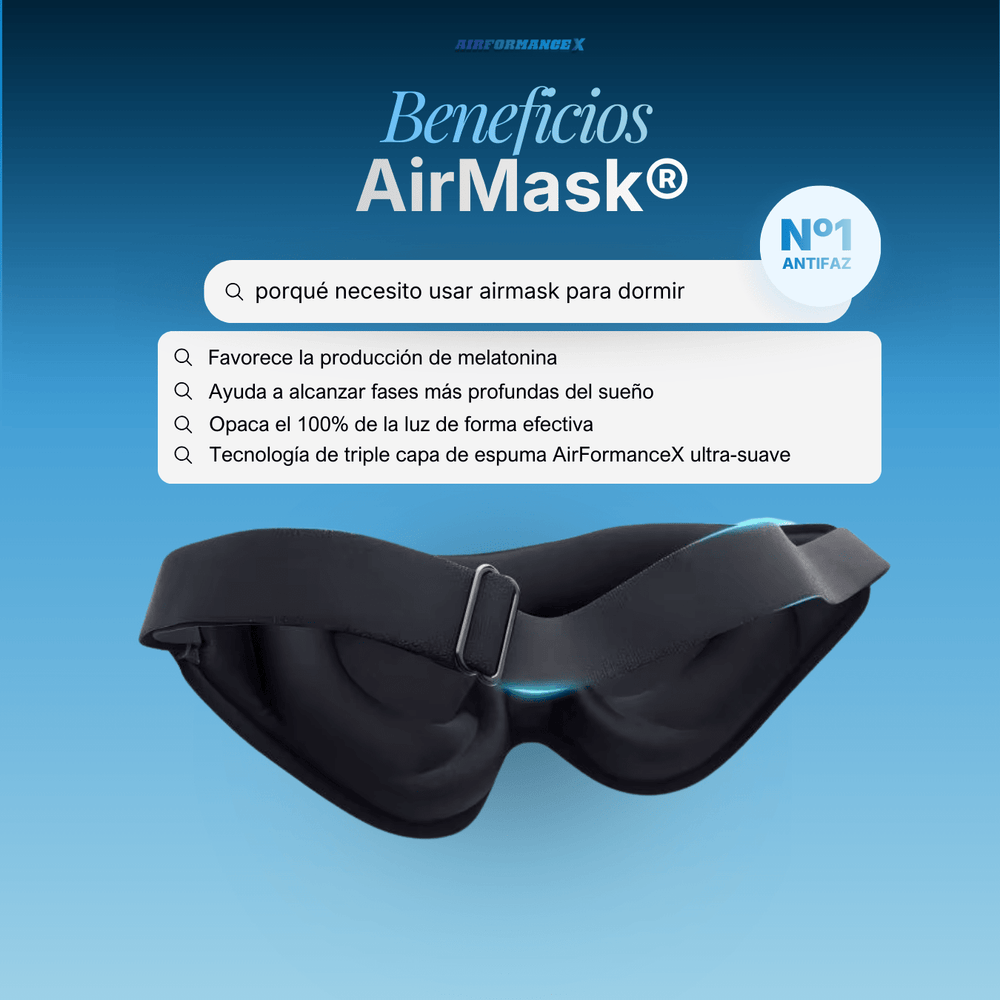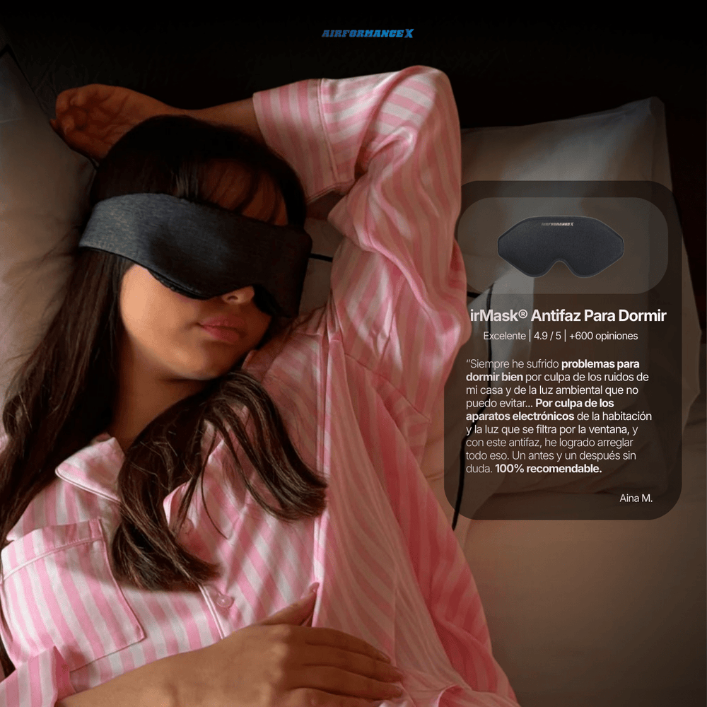 AirMask® crea oscuridad total para que disfrutes de un sueño profundo e ininterrumpido, despertando con sensación de descanso real.